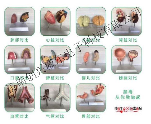 產品材質:樹脂。產品介紹:吸毒對人類身體內部器官危害較大,本系列產品主要呈現吸毒后,人體內部器官對比,對人體各個機能產生重大危害,警示參觀者,遠離毒品。產品配置:包含大腦、心臟、直腸、肺、牙齒、膀胱器官等7套器官對比。